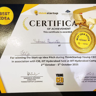 Participating in the Young CEO program, in association with CIE IIIT Hyderabad, helped me understand market research and how to pitch a product. It helped connect creativity with real-world thinking. Winner best Idea & pitch.